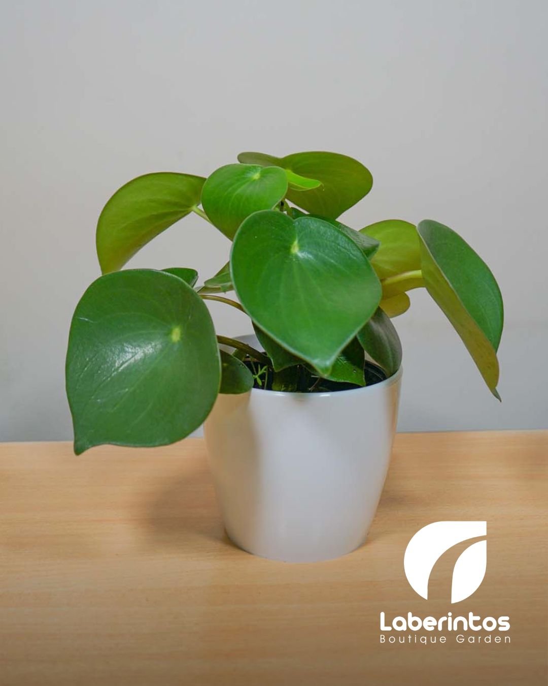 Peperomia obtusifolia ó caucho bebé con maceta blanca