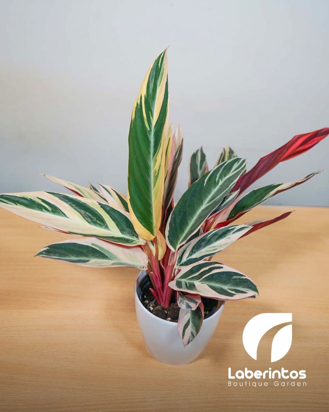Stromanthe (Calathea Roseopicta) en maceta blanca