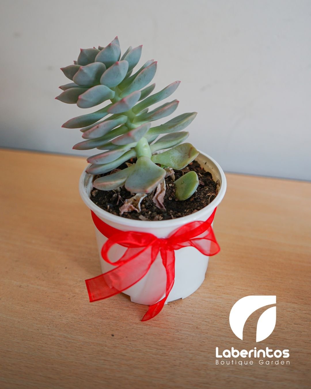 • Suculentas en macetas color terracota  7cm, decoradas con delicadas piedras y lazos.