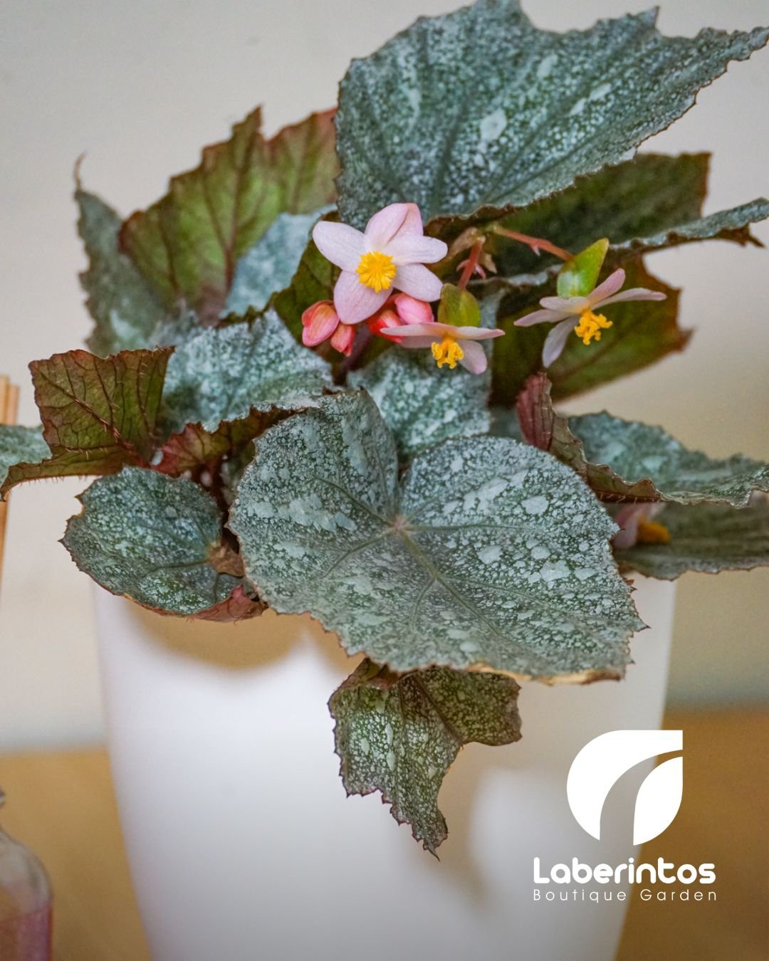 Begonia Rex hoja verde plateada Ala de Ángel con maceta plástica blanca