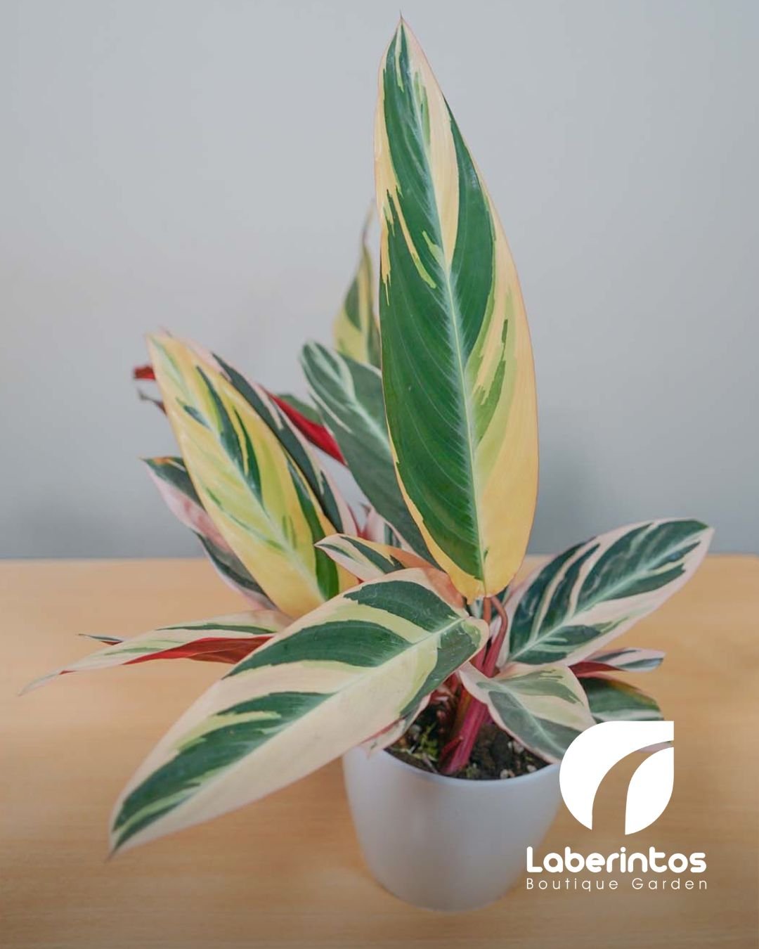 Stromanthe (Calathea Roseopicta) en maceta blanca